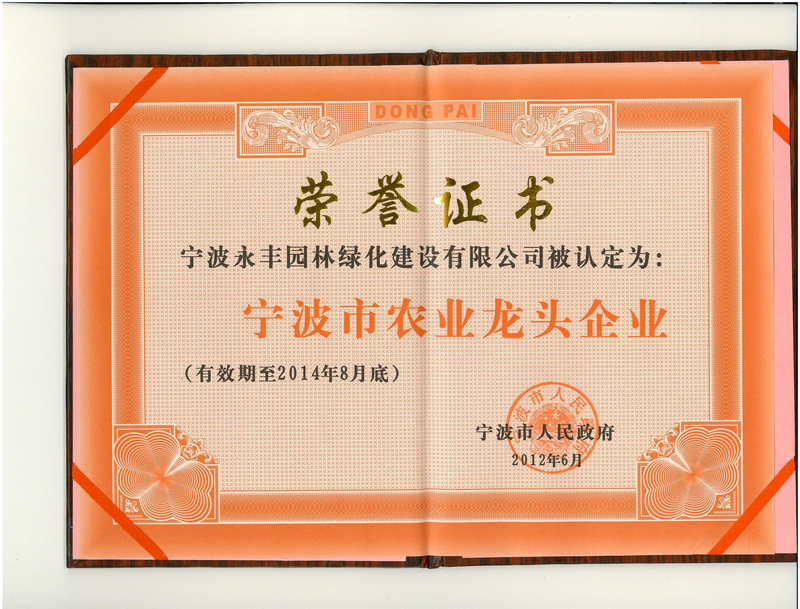市級林業(yè)龍頭企業(yè)證書