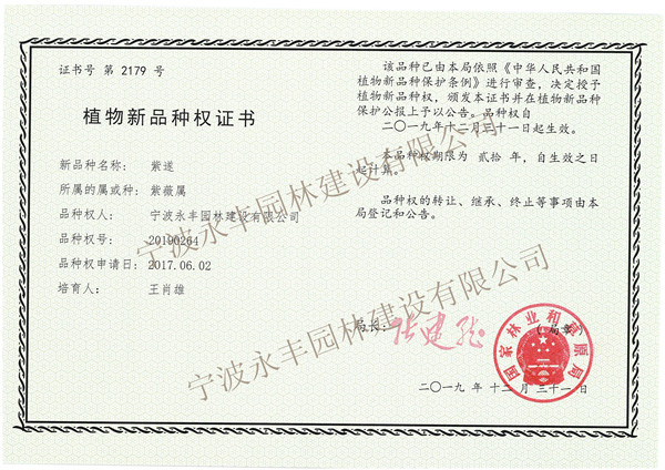 紫遂 植物新品種權(quán)證書