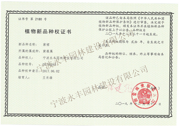 紫裙 植物新品種權(quán)證書